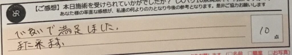 お客様の声「ていねいで満足しました。また来ます。」ズバリ10点!!