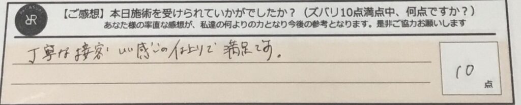 お客様の声「丁寧な接客、いい感じの仕上がりで満足です。」ズバリ10点!!