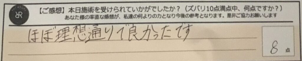 お客様の声「ほぼ理想通りで良かったです。」ズバリ8点!!