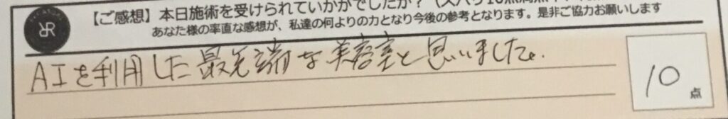 お客様の声「AIを利用した最先端な美容室と思いました。」ズバリ10点!!