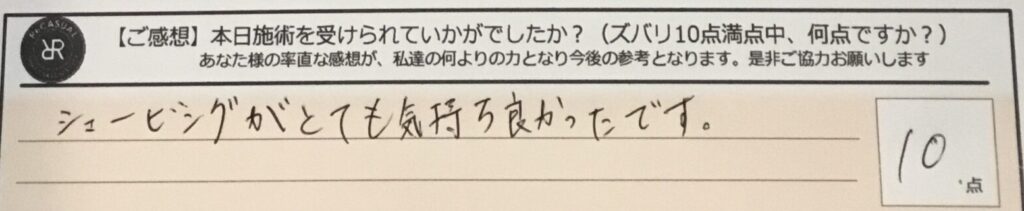 お客様の声「シェービングがとても気持ち良かったです。」ズバリ10点!!