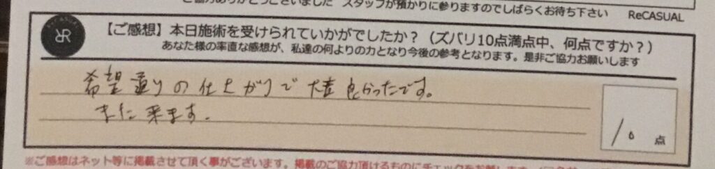 お客様の声「希望通りの仕上がりで大変良かったです。また来ます。」ズバリ10点!!