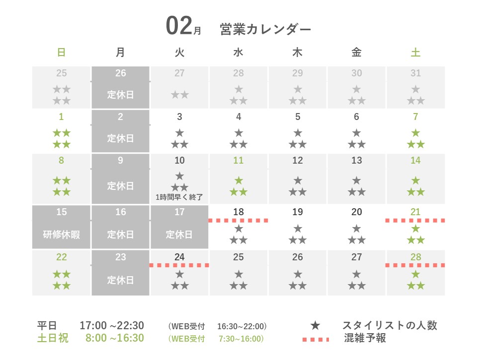 ◆シフトの急な変更によりスタイリスト数も急遽変わる可能性があります。