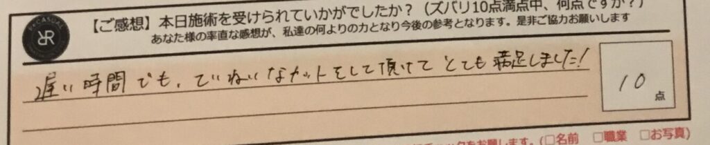 お客様の声「遅い時間でも、ていねいなカットをして頂いてとても満足しました!」ズバリ10点!!