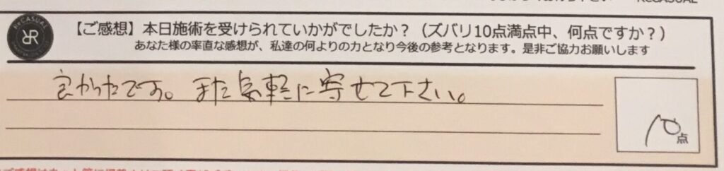 お客様の声「良かったです。また気軽に寄せて下さい」ズバリ10点!!