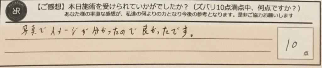 お客様の声「写真でイメージが分かったので良かったです。」ズバリ10点!!