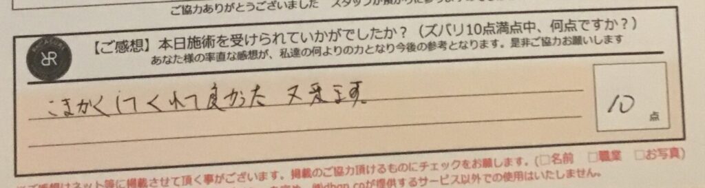 お客様の声「こまかくしてくれて良かった。又来ます。」ズバリ10点!!