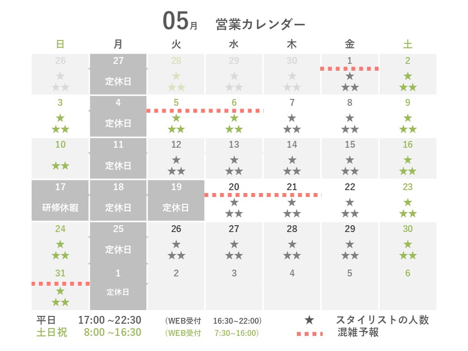 ◆シフトの急な変更によりスタイリスト数も急遽変わる可能性があります。