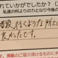 お客様の声「本日はありがとうございました。普段行くようなところとは異なりアドバイスも何個もお話し頂き良かったです。またよろしくお願いします。」ズバリ10点!!