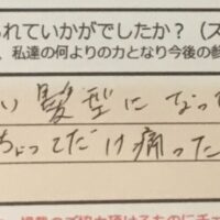 お客様の声「丁寧な対応で施術も早く、とても良いスタイリングをしていただけた」ズバリ10点!!